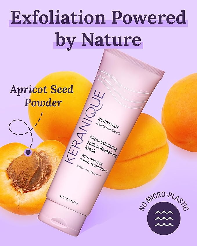 - DERIVED FROM NATURE: This gentle scalp scrub derives its exfoliating properties from apricot seed powder, which means there are no ocean-damaging microplastics; Powered by nature, including Menthol, Castor Oil, Jojoba, and more