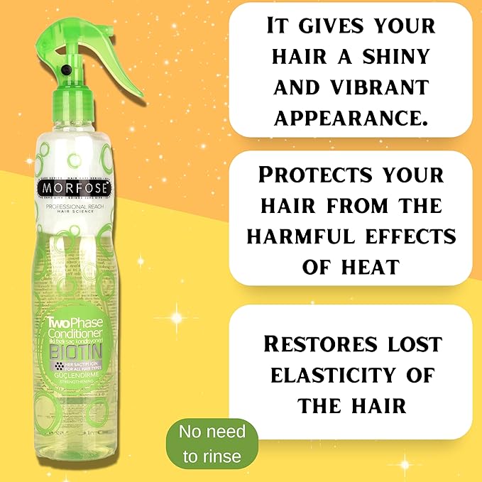 Morfose Professional Two Phase Leave-in Conditioner for Dry, Damaged, or Brittle Strands, Repairs and Protects, Damage, and Split Ends, 13.52 Fl. Oz (Biotin)