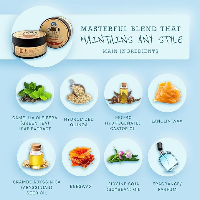 - BOOSTS CONFIDENCE AND HAIR HEALTH: Using Smooth Viking Forming Cream not only helps you look your best but also boosts your confidence by providing a reliable, stylish look. The natural ingredients like green leaf extract and quinoa support healthy hair growth, making it a valuable addition to your daily grooming. This hair styling cream for men is great for achieving a polished appearance.