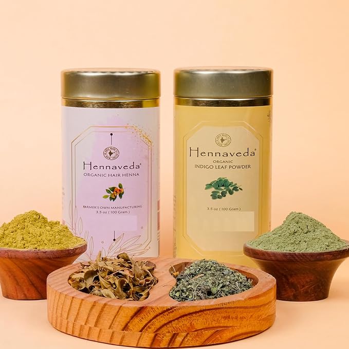 Hennaveda Hair Henna Powder & Indigo Powder, Hair Color Combo with Hair Dye Brush, Gloves and Shower Cap 200g, Henna with Geographical Indication (GI) tag "Sojat Mehndi"