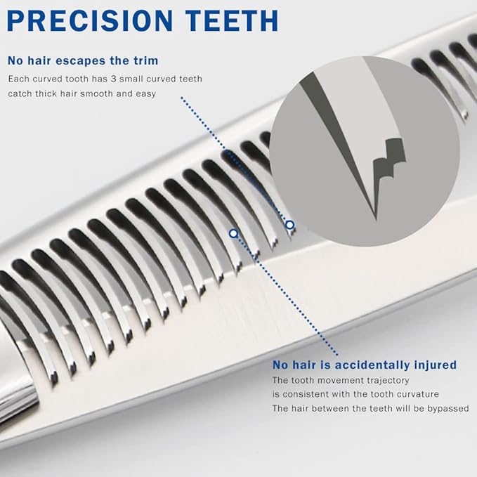 - 【Patent Design】Inspired by nature's top predators, each bionic curved primary tooth features 3 bionic curved micro-teeth for effortless.Effortlessly tames even the toughest, hardest-to-cut hair with precision and ease.16 Cut Faces gem stone set on the back of the scissors, suitable for others to admire.