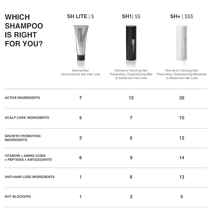 - THICKENING SHAMPOO: We pushed our chemists to develop the best performing thickening shampoo on the market and kept testing it until it was perfect. Our SH1 Daily Thickening Shampoo injects strength into your hair from the first wash, making hair appear thicker and fuller without weighing it down.