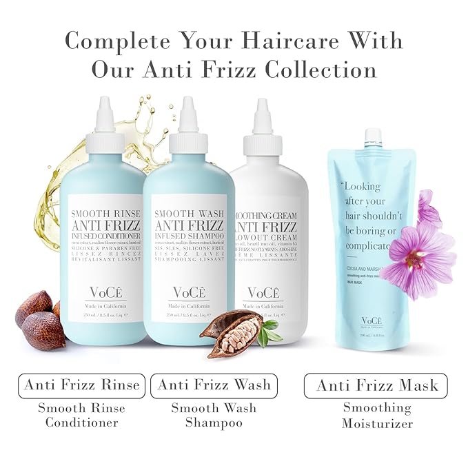 VoCÊ Haircare Natural Smoothing Blowout Cream | Anti-Frizz Blowout Cream with Frizz Control and Heat Protection | Vegan, Non-Toxic, Cruelty-Free Haircare for Smooth, Shiny Hair (8.5 oz | 250ml)