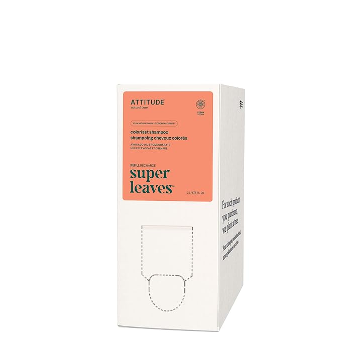 ATTITUDE Colorlast Hair Shampoo, EWG Verified, For Color Treated Hair, Protects Color, Naturally Derived Ingredients, Vegan and Plant Based, Avocado Oil and Pomegranate, Bulk Refill, 67.6 Fl Oz