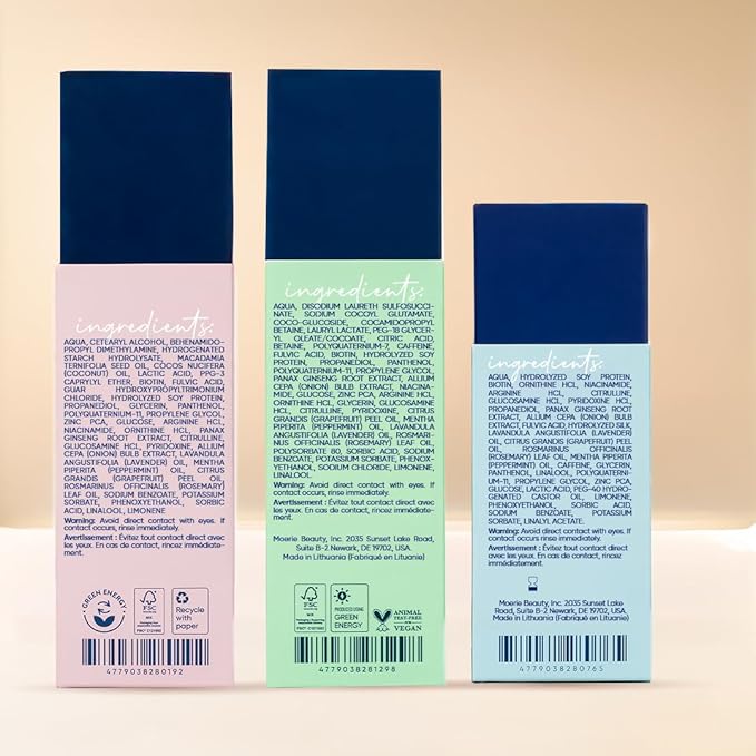 - 100 Vital Nutrients Work Together: Every ingredient in your Moerie Hair Growth Shampoo and Conditioner has a special purpose; Biotin plays a vital role in hair growth by boosting keratin production; Caffeine has stimulating properties; B-complex vitamins support healthy hair growth; etc.