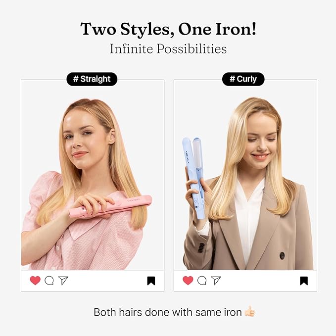 - đ¤Unlimited Style, Just Switch It Up!: Step out with a new vibe every day and let your hair do the talking! Glide to a sleek straight with a smooth pass, twirl a flirty C-curl, sculpt a sophisticated S-wave, or boost your roots for voluminous oomphâour flat iron is the magic wand for your hair's every whim. With intuitive design and versatile heat settings, switch up your look with the same ease you change your outfit