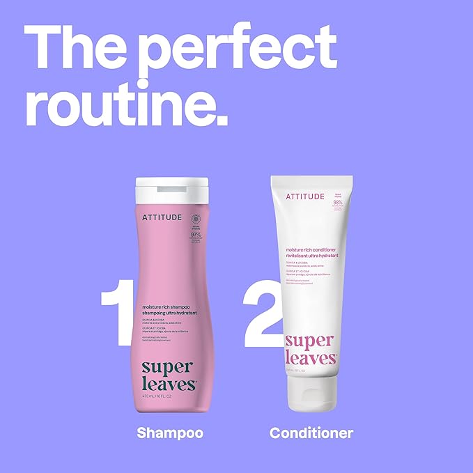 ATTITUDE Moisture Rich Hair Shampoo, EWG Verified, For Dry and Damaged Hair, Naturally Derived Ingredients, Vegan and Plant Based, Quinoa and Jojoba, 16 Fl Oz (Pack of 6)