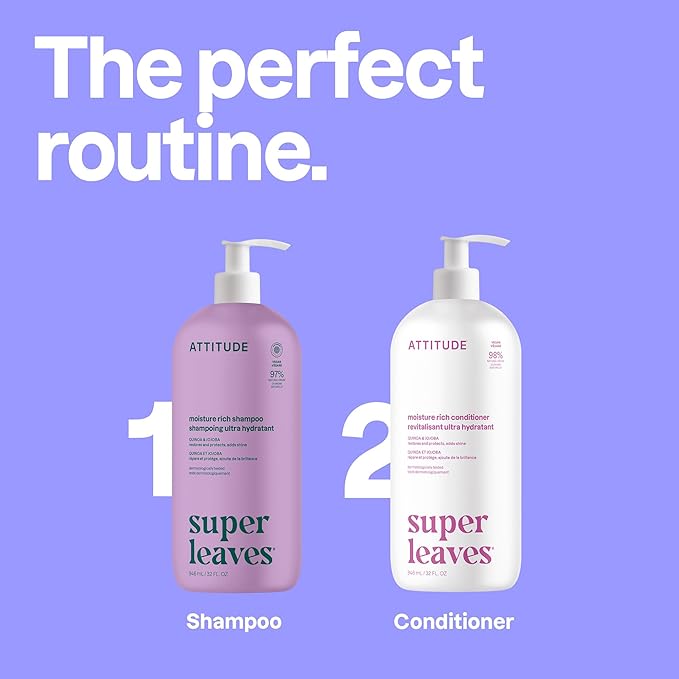 ATTITUDE Moisture Rich Hair Shampoo, EWG Verified, For Dry and Damaged Hair, Naturally Derived Ingredients, Vegan and Plant Based, Quinoa and Jojoba, 32 Fl Oz (Pack of 6)