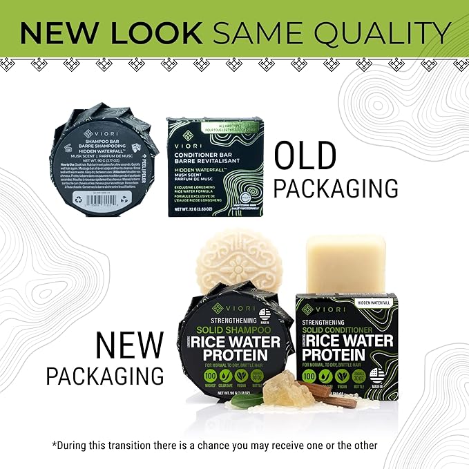 Viori Hidden Waterfall Shampoo and Conditioner Bar Set and Bamboo Holder - Made with Rice Water for Hair Growth - Handcrafted Sulfate Free Shampoo and Conditioner