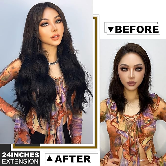 Vigorous Dark Brown Hair Extension 24InchLong Clip in Hair Extensions 4Pcs Thick Long Wavy Synthetic Hairpieces for Women
