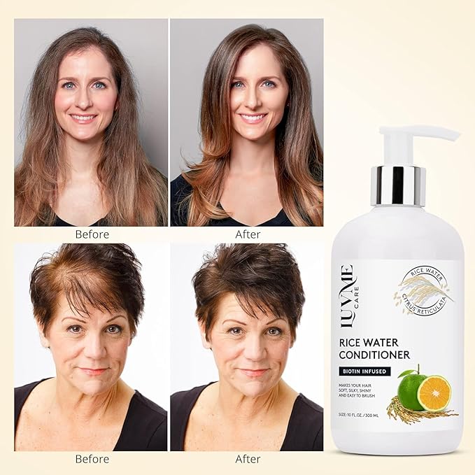 Luv Me Care Rice Water Hair Thickening Shampoo and Conditioner Set - with Biotin Strengthening and Volumizing Formula for Thinning Hair, All Hair Types, Men and Women
