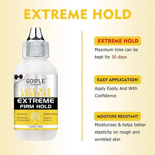 - Wig Glue: It is safe for use on both poly and lace hair replacement systems and creates an invisible bond after application. This invisible bonding helps to hide your hairline and creates a natural look for your wig or toupee for both men and women alike.