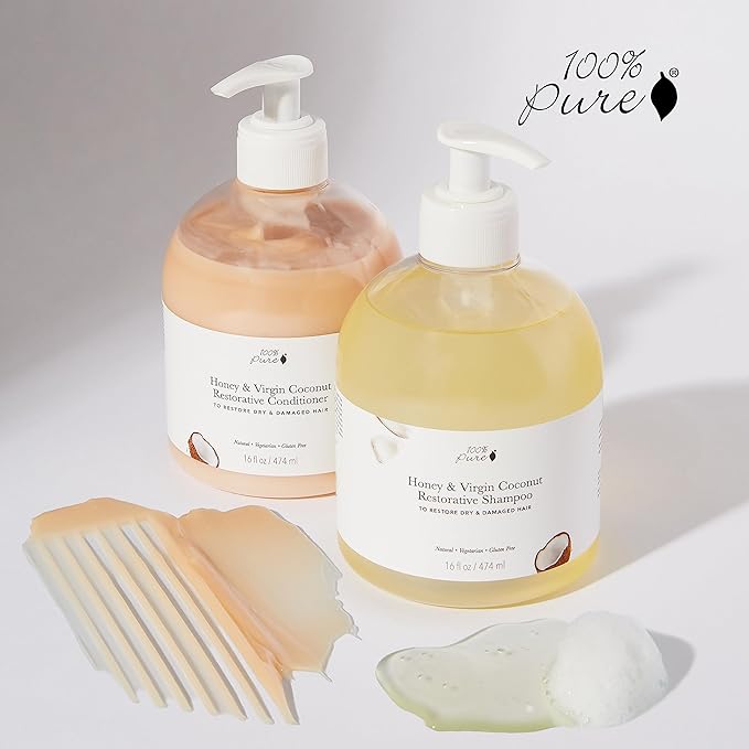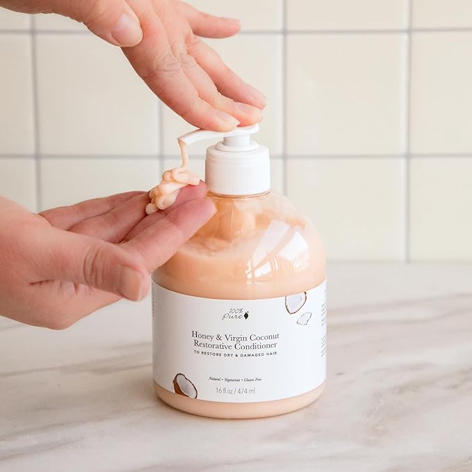 100% PURE Restorative Conditioner Honey & Virgin Coconut Moisturizer & Repair Replenishing Nutrient Boost for Dry Damaged Hair, Promotes Healthy Growth for Women & Men Sulfate Free - 16 Fl Oz