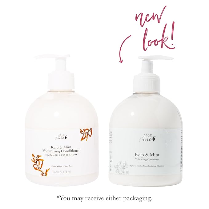 100% PURE Kelp & Mint Volumizing Conditioner Moisturizer & Deep Hydration - Botanical Body Boost for Dry, Damaged Thinning Hair, Promotes Healthy Growth for Women & Men - Sulfate Free - 16 Fl Oz