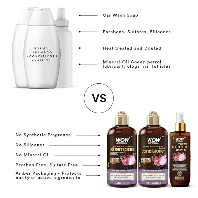 WOW Skin Science Onion Black Seed Oil Shampoo & Conditioner Treatment Set with Oil for Strong, Soft & Shine Hair for All, Dry, Damaged Hair Types, Sulfate, Paraben, Silicone Free