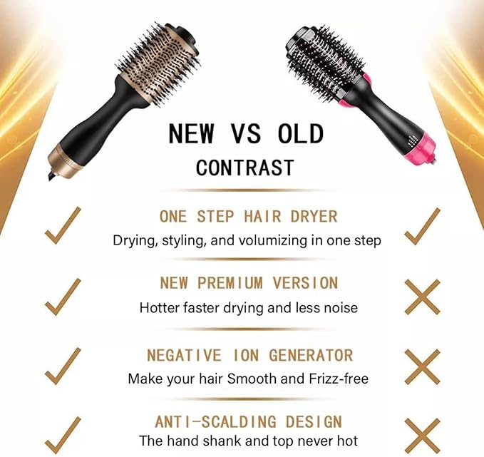 - ✔️ Built with a genuine ION generator for Smooth and Frizz-free hair. 1200W improved power provides the right heat and stronger wind. Improved design make it less noisy and the hand shank never hot. The 360° swivel cord and oval design allows you to use it flexibly. Designed with tangle-free Nylon Pin & Tufted Bristles, 3 heat levels, Ceramic Coating.