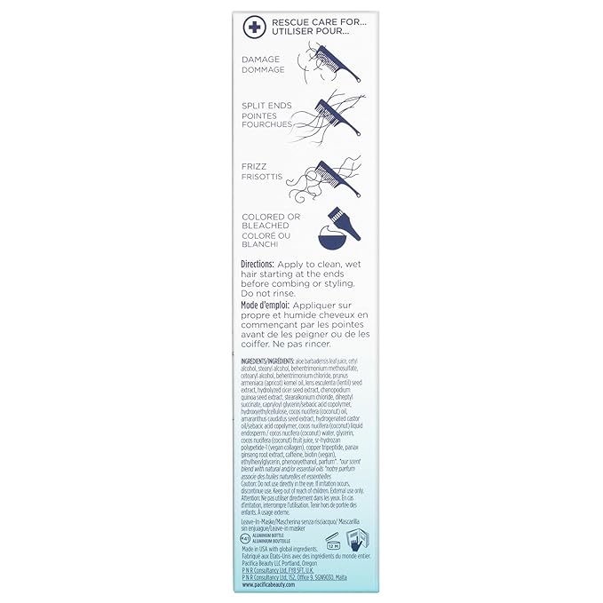 PACIFICA Beauty, Coco Bond Damage Care Leave-In Repair Mask Treatment, Dry & Damaged Hair from Bleach, Color, Chemical Services, Chlorine, & Heat, Coconut, Vegan