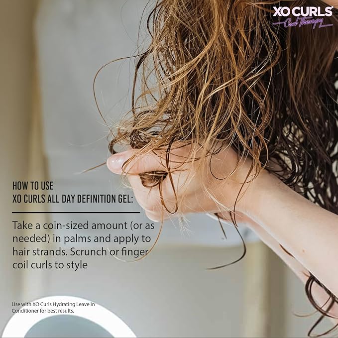 XO Curls All Day Definition Gel with Flax Seed and Argan Oil 3.4 Fl Oz | Unisex Curly Cream Hair Therapy for Frizz-Free, Soft Natural Curls