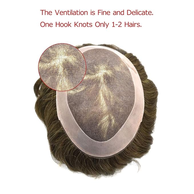 Mens Toupee Human Hair System Durable Fine Mono Lace Men Replacement PU Poly Skin Around Light to Medium Density Wig Hairpiece (7"X10", 20 Light Ash Blonde)