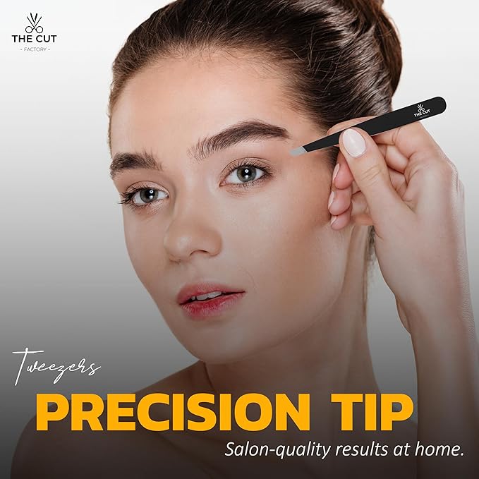 The Cut Factory- 6.5” Professional Hair Scissors & Tweezers - High Carbon 420 Stainless Steel Hair Cutting Scissors, Ultra-Sharp Barber Shears for Salon & Home, (BLACK)