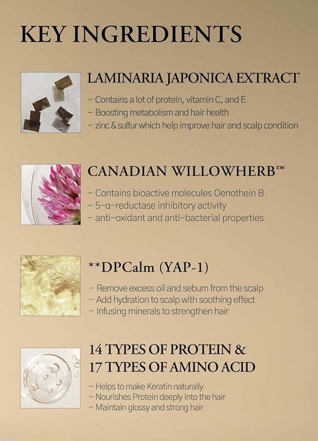 - [THICKENING & STRENGTHENING HAIR]: Laminaria with 14 types of proteins and 17 types of amino acids help to repair and enhance overall hair texture, resulting in stronger, shinier, and healthier hair