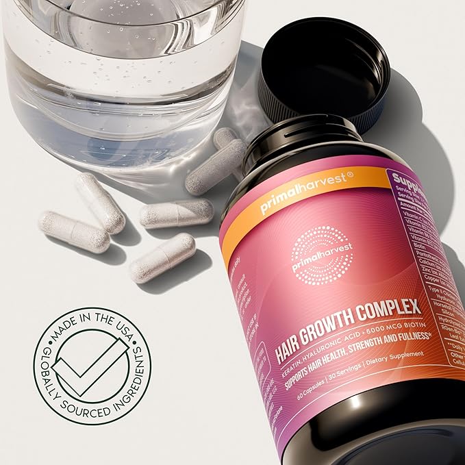 Primal Harvest Hair Growth Vitamins, Hair Growth for Women & Men - 60 Hair Growth Pills, Natural Hair Thickening Products for w/Biotin & Zinc - Hair Supplement, Regrowth Hair Vitamins