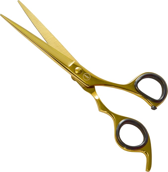 - [Sophisticated Design] Model: Hook-HC6.5-G includes 2 pcs cutting and thinning shears, measuring 6.5 inches in total length. These professional hair-cutting barber scissors are safe and user-friendly for individuals of all ages, including men, women, seniors, children, and even babies. These haircut shears feature a sleek, mirror-finished exterior, adorned with a gold color, enhancing the overall visual appeal.