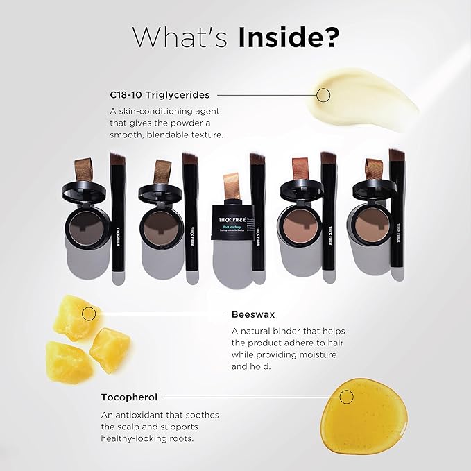 - INSTANTLY CONCEALS THIN HAIRLINE AND COVERS GRAY ROOTS: The THICK FIBER Root Touch Up Powder is your secret weapon for effortlessly concealing thin hairlines and those unwelcome gray roots. With a few quick strokes, watch as the hair concealer powder works its magic, providing you with instant coverage that camouflages imperfections and boosts your hairline's fullness.