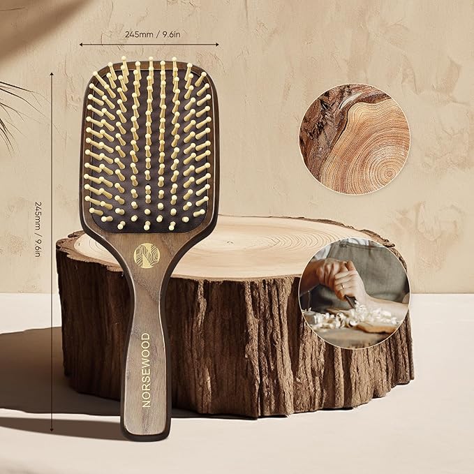 - Wooden Bristles for Scalp Health :The rounded wooden bristles provide a soothing scalp massage, promoting healthy blood circulation and reducing breakage. Perfect for long,straight,fine hair,these bristles glide effortlessly to prevent static and frizz