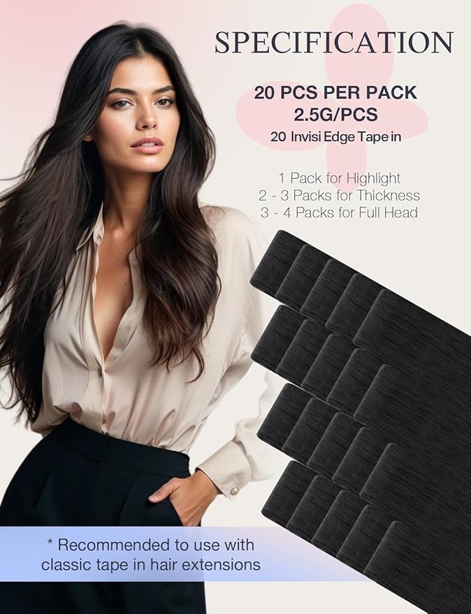 - Natural Invisi Edge Tape In Hair Extensions: Injected tape extensions imitate the root of real human hair growth, the specially designed invisible look blends perfectly with your natural hair. Seamless tape ins can be used in obvious areas like crowns