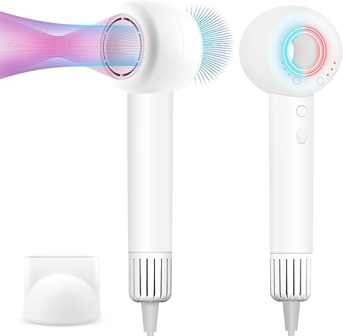 - Safety and Low Noise—Outfitted with precision temperature control technology, our ionic hair dryer monitors the temperature 100 times per second and provides dual temperature protection to prevent heat damage. Built-in overcurrent and overvoltage protections ensure safe operation. It operates quieter than similar products, with noise levels under 50db, protecting your ears and enhancing comfort during use.