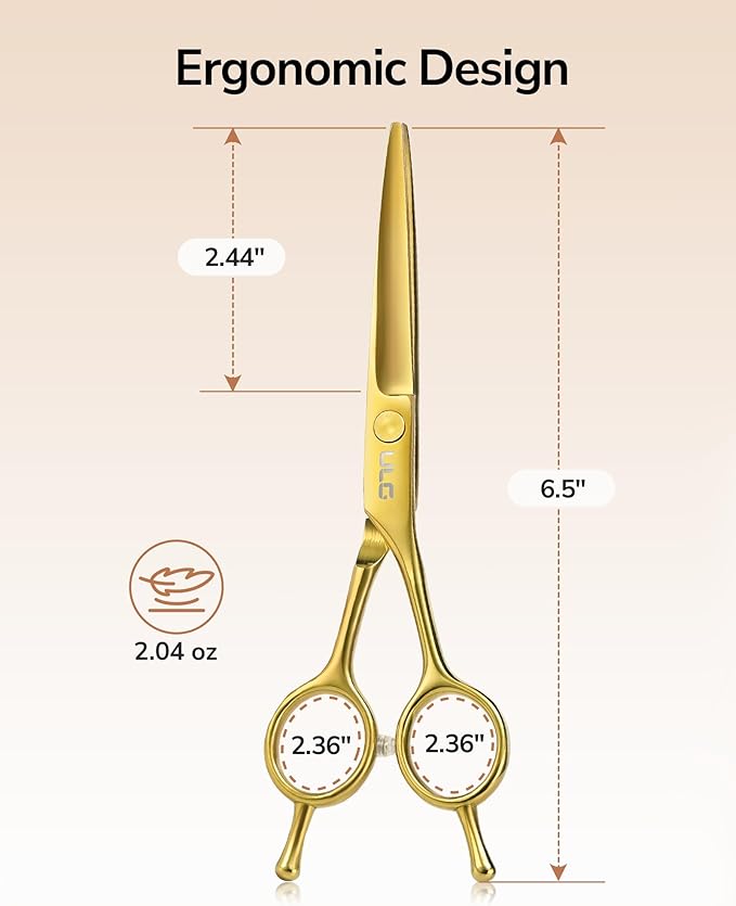 - BIGGER FINGER HOLES: Designed with bigger finger holes for both women and men, ULG haircut scissors are comfortable to hold and easy to maneuver for all haircut postures. Whether you are cutting, trimming, or styling, these 6.5” medium sized scissors will be your go-to choice from the haircutting tool kit