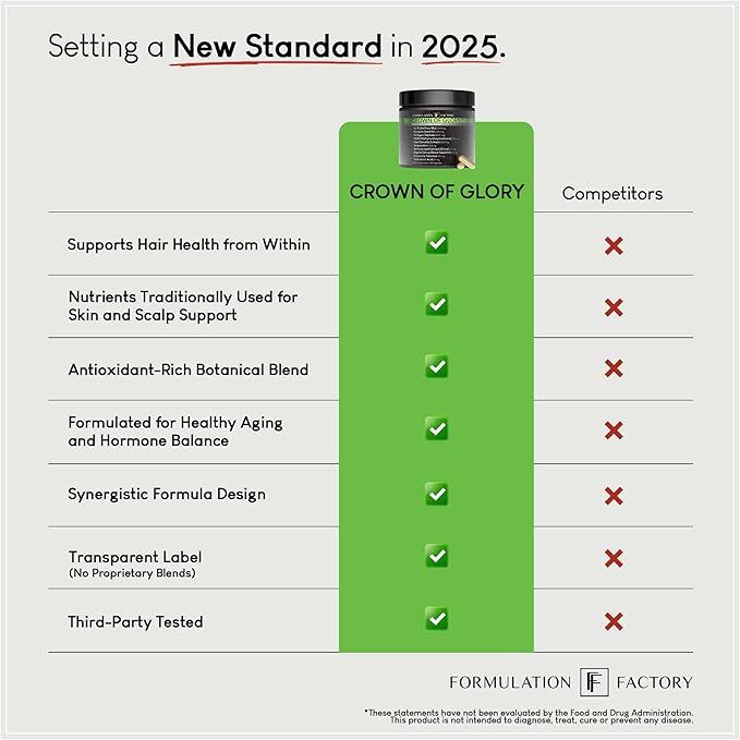 Formulation Factory Crown of Glory 10-in-1 Hair Growth Maximizer, DHT Blocker with Saw Palmetto, Fo-Ti, Collagen, Pumpkin Seed Oil & More, Supports Hair & Scalp Health (4 Month Supply, 240 Capsules)
