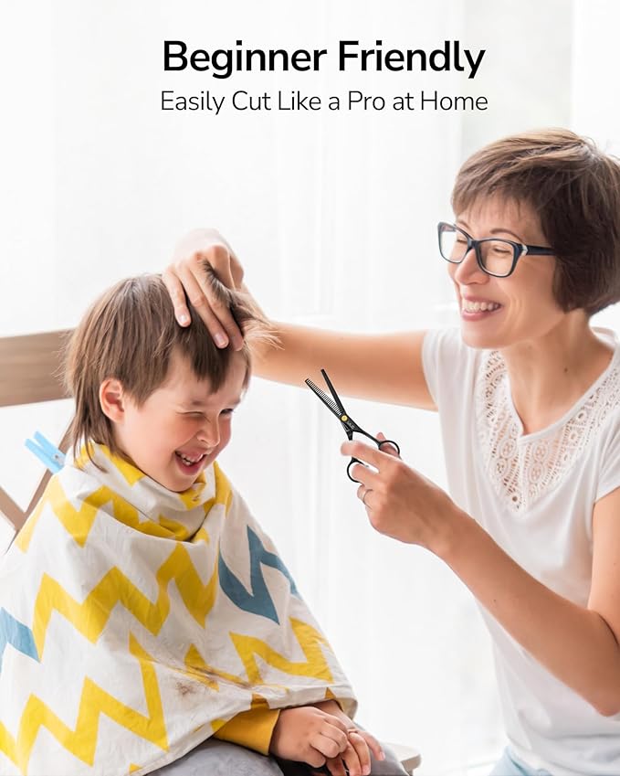 - VERSATILE USES: One thinning shears for hair cutting fit for almost all haircut needs, including hair cutting, beard trimming, mustache shaping, pet grooming, cutting the nose hair, and more. These salon-grade barber scissors for women come in gift-ready packaging, making them a thoughtful gift for parents, friends, barbers, stylists, or anyone who loves DIY haircuts. Ideal for thick hair thinning, stylist-grade texturizing, women's hair thinning.