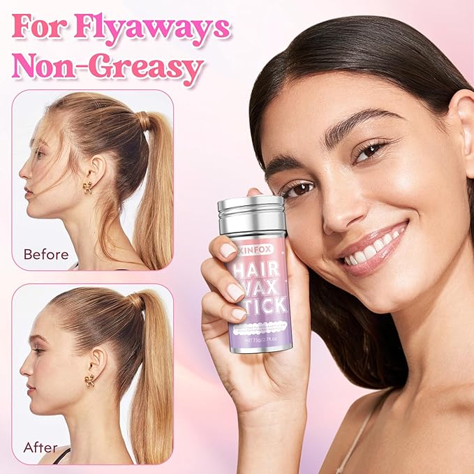 - 【4 in 1 styling tool】The hair wax stick kit includes a hair wax stick + an edge brush + a hair brush + a rat tail comb, which is specially designed for kids/women's hair, achieving one-stop styling from trimming to shaping.