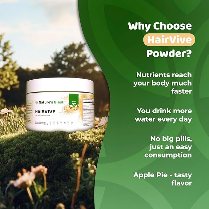 - EASY TO USE: Simply mix one scoop of our delicious Apple Pie flavored hair growth supplement with 8 oz of water or your favorite cold beverage daily. Our hair vitamins powder dissolves easily with no clumping or gritty texture.