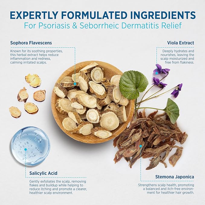- Comprehensive Seborrheic Relief Set: Roycederm's Seborrheic Dermatitis & Psoriasis Cream, Shampoo and Conditioner provide a complete solution to relieve itching, redness, flaking, scaling, and discomfort caused by seborrheic dermatitis, psoriasis, folliculitis, and dandruff.