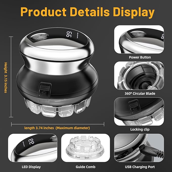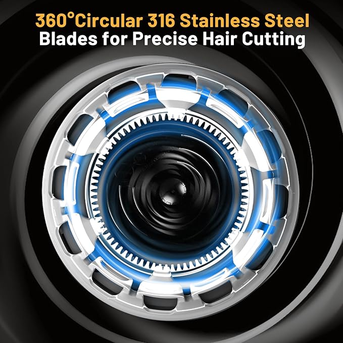 - Designed for self haircut, the 360° circular stainless steel blades deliver smooth and precise results every time. The blades move rapidly back and forth inside, cutting hair efficiently without touching the scalp—ensuring a safe and gentle experience