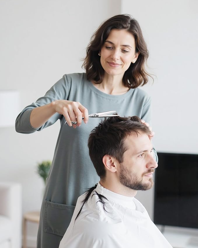 - Durably Sharp Blades: Engineered with 52–58 HRC hardness for lasting sharpness, these scissors cut hair effortlessly without snagging or causing split ends. Perfect for trimming ends and creating sharp, polished lines