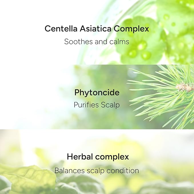 - CICA Complex for Soothing and Protection - Contains Centella Asiatica, Madecassoside, and Asiatic Acid to strengthen the scalp barrier, providing gentle care even for sensitive or stressed scalps.