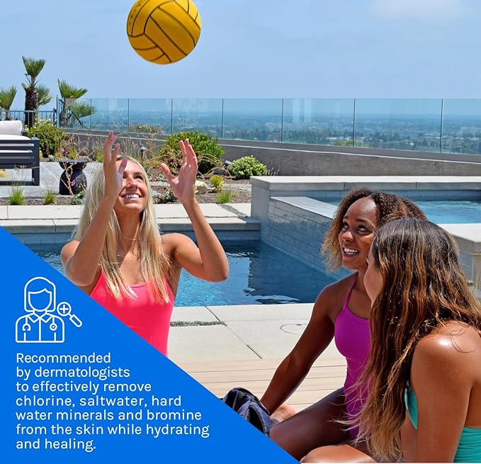 - Complete Chlorine Removal: TRISWIM's after-swim body wash and chlorine shampoo for swimmers, conveniently packaged in 32 fl oz bottle, effectively eliminate chlorine, bromine, hard water minerals, and saltwater from skin and hair, ensuring a thorough cleanse post-swim.