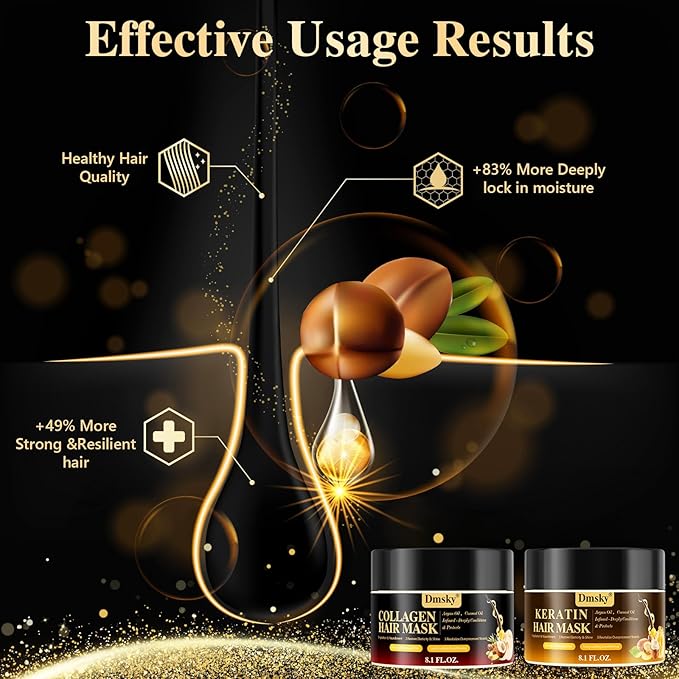 - Collagen Hair Mask & Keratin Hair Mask-Dmsky hydrating hair mask,add moroccan nut oil,coconut oil,shea butter oil,drynaria fortunei extract strengthens hair from within. it offers lasting moisture and effortless styling for your hair.