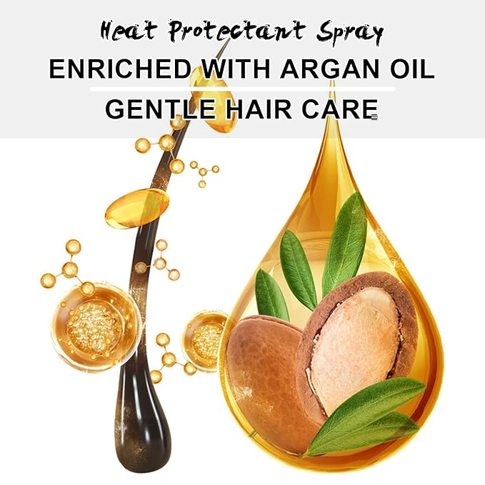 - 【Moisture Boost, Frizz Control & High Shine】This hair heat protectant spray is enriched with argan oil to hydrate and lock in moisture. It delivers a silky, high-shine effect without greasy buildup or stiffness, giving you a shiny, weightless finish keeps hair feeling soft, smooth, and manageable with every use.
