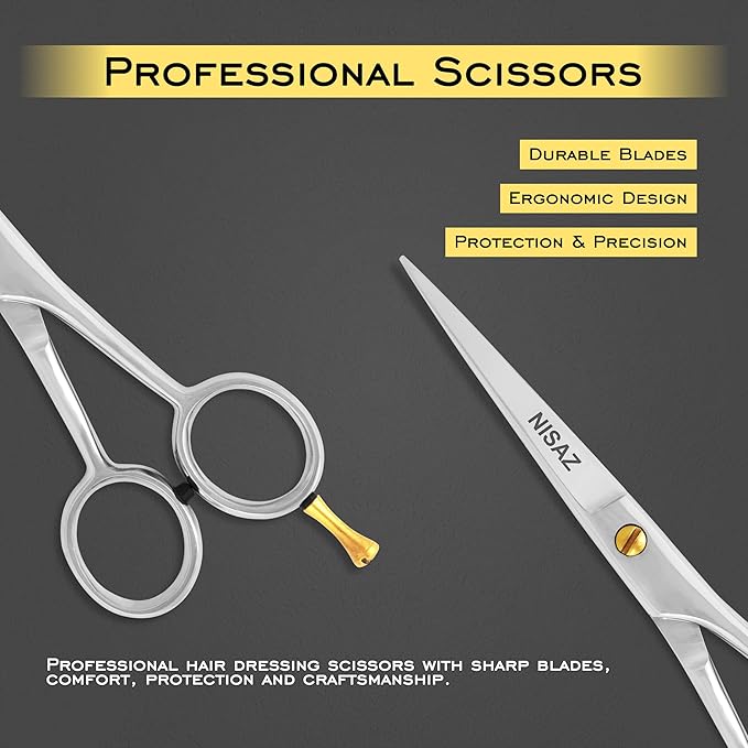 - Durable Quality: Crafted from high-quality rust-resistant stainless steel, these professional hair scissors deliver durability and lasting sharpness. These scissors for hair cutting are built for everyday use in salons, barbershops, or home grooming setups.