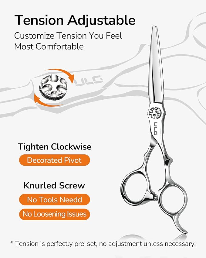 - Adjustable Tension: Customize your cutting experience with the knurled tension screw. Adjust tightness without tools to find your preferred balance, giving you effortless control for every haircut style. The scissors tension are preset to perfect level before shipping