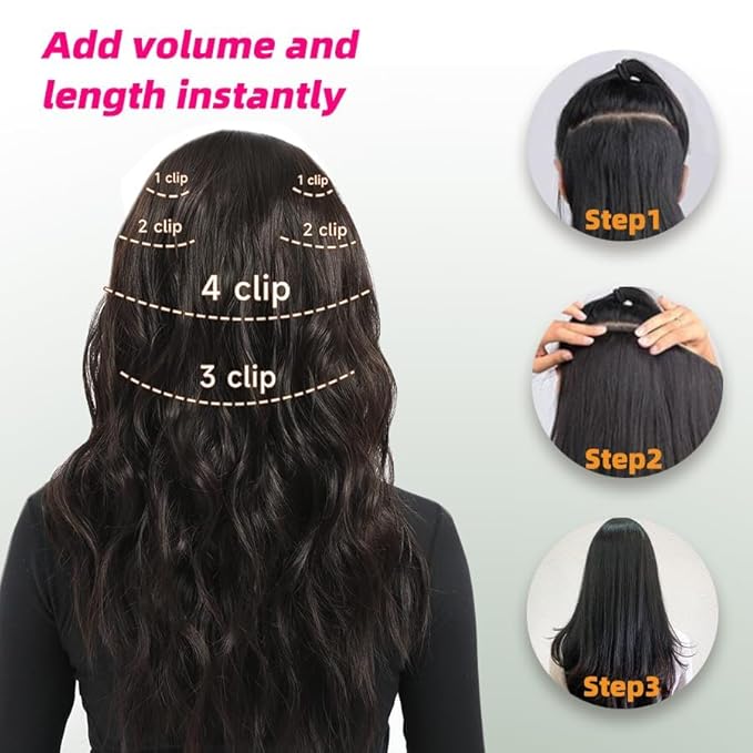 - đ§ă2 Minutes to Weară Clip in hair extensions real human hair are very easy to wear, all you need to do is divide into two sections, then snap the real human hair extensions clip ins onto the bottom half of by aligning them with the seams. If you want a thick head of hair but do not have the time to style your hair, you can choose to wear.