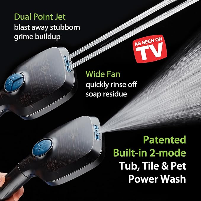 - BUILT-IN 2-MODE TUB & TILE POWER WASH - Tired of that disgusting soap scum and dried hair left behind after each shower? Now you can clean it all in seconds from up to 6 feet away, without setting a foot in your shower. Simply flip the AquaCare handle and turn it into a High-pressure Power Wash! Use Wide Fan to quickly rinse off large areas, or switch to Dual Point Jet and instantly blast away the stubborn grime! Extra-long 72'' Stainless Steel Hose provides Added Reach and Mobility.