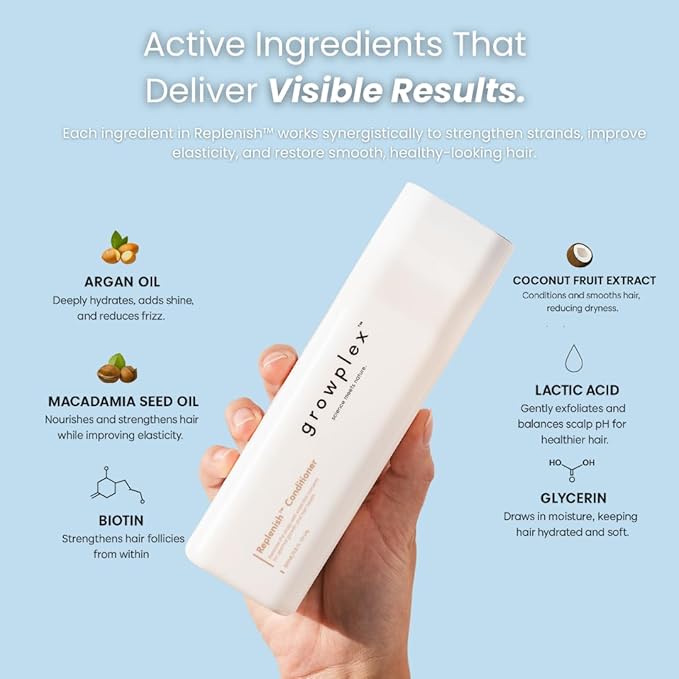 Replenish Conditioner – Hydrating Botanical Blend with Biotin, Argan Oil & Macadamia Seed Oil – Helps Reduce Breakage & Supports Fuller-Looking Hair – 250ml