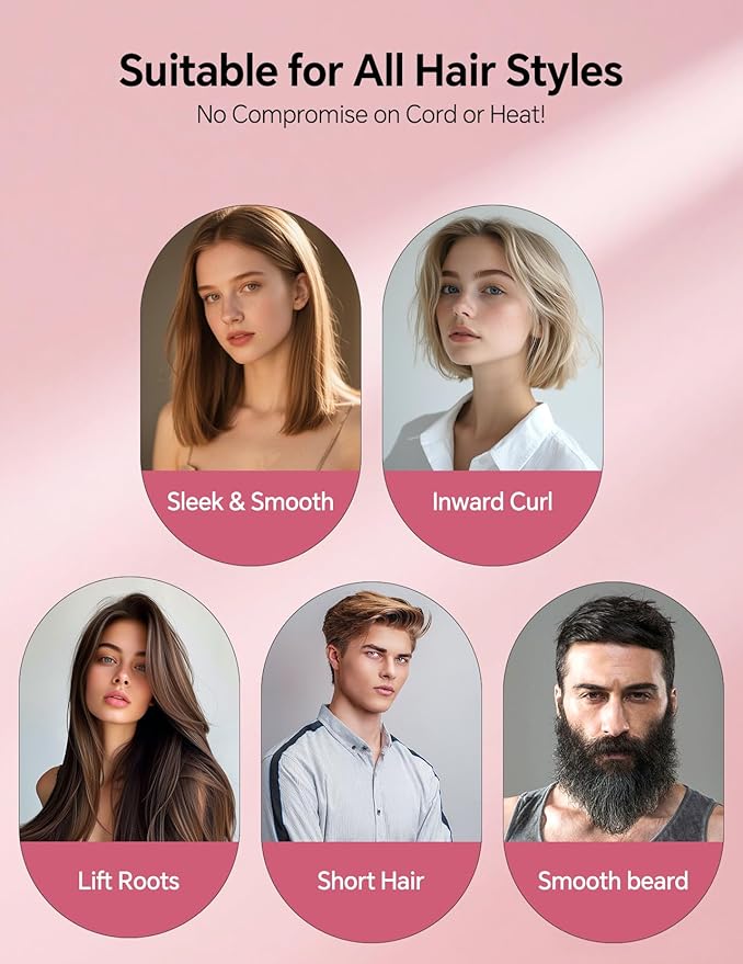 - đăLightweight & Easy to Use - Even for Beginnersă Weighing less than a smartphone, this small straightening brush is comfortable to hold and maneuver. The 360° swivel cord prevents tangling, while the intuitive design lets anyone achieve sleek, shiny hair with zero hassle.