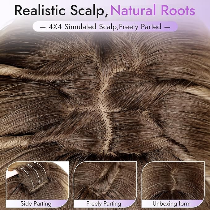 - 【Freely Parted Realistic Scalp Design】:Features a 4x4 inch simulated scalp that allows for versatile parting—middle part, side part, or any style you prefer. The natural-looking hairline enhances realism for a seamless appearance.